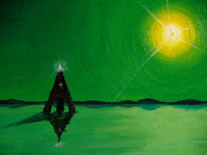 und die ganze szenerie sind in einem positiven, eher bläulichen grün (farbe der hoffnung) gehalten. das ewige licht scheint in jedem bild von rechts.